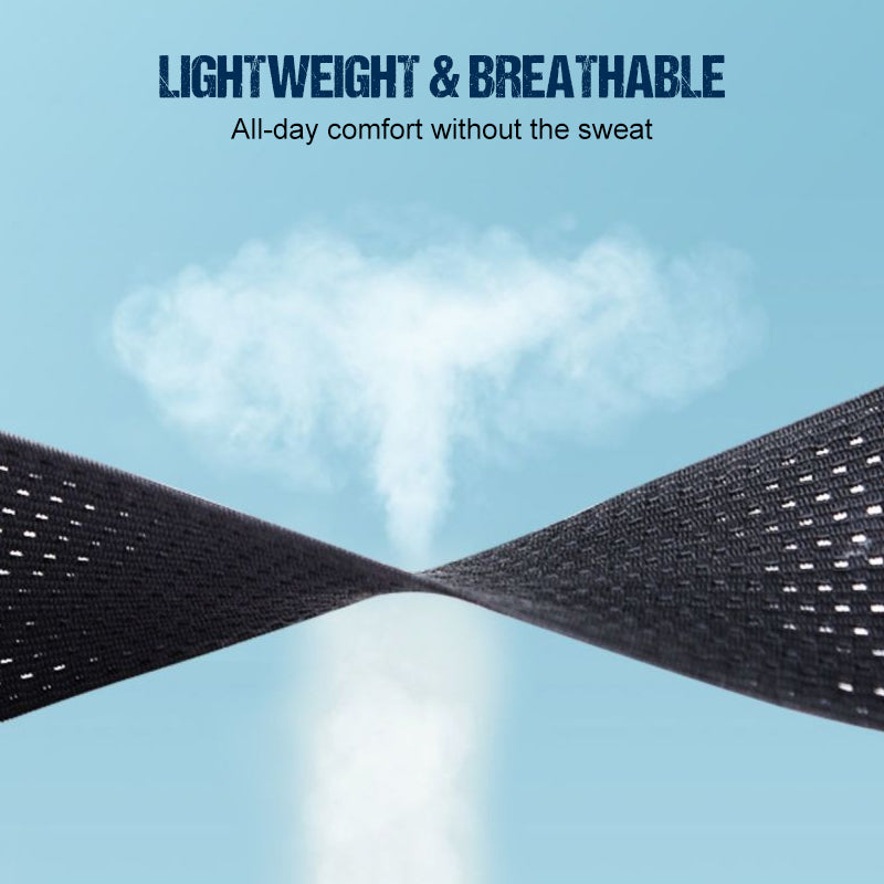 ULTRA TENKÁ PRODYŠNÁ TKANINA – Vyrobeno z lehkého, perforovaného materiálu, který umožňuje pokožce dýchat. Můžete jej pohodlně nosit po celý den, aniž byste se přehřáli, a zajistí vám nepřetržitou oporu bez zbytečného objemu a pocení.