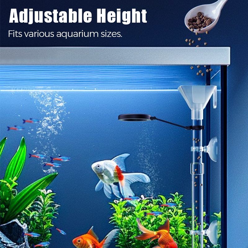 EFEKTYWNA ZABAWA: Pływający pierścień doskonale zawiera pokarm powierzchniowy dla złotych rybek, podczas gdy regulowana rurka precyzyjnie podaje tonący pokarm zwierzętom żerującym przy dnie, takim jak krewetki. Dzięki przezroczystej konstrukcji można śledzić każde karmienie, jednocześnie zapobiegając marnowaniu pokarmu i utrzymując doskonałą jakość wody.