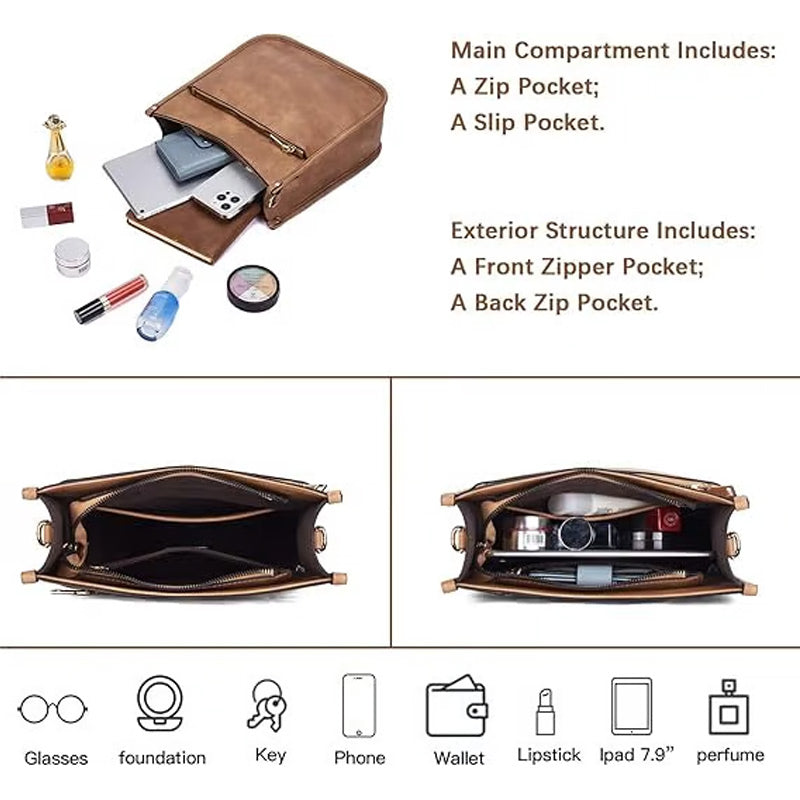 DUŻA POJEMNOŚĆ - Modne potrójne torby na krzyż mają 2 duże kieszenie na suwak, 1 wewnętrzną kieszeń na suwak, 5 miejsc na karty i 2 przednie kieszenie na suwak, duża pojemność może zaspokoić codzienne potrzeby. Możesz przechowywać telefon komórkowy, portfel, klucze, szminkę, serwetki i inne codzienne potrzeby.