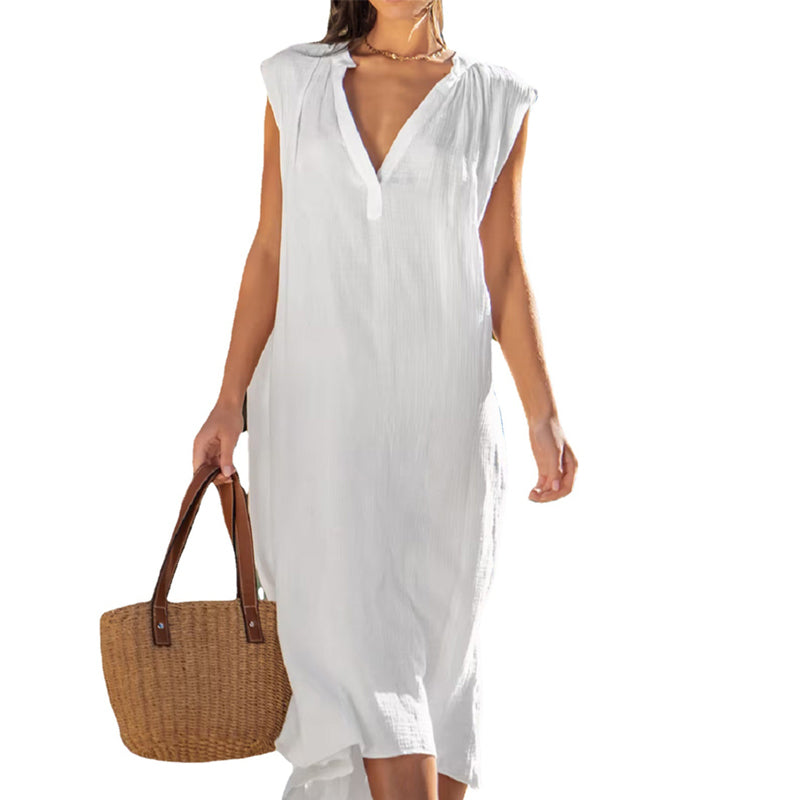 KLASYCZNY PROJEKT BEZ RĘKAWÓW - Zachowaj chłód i wygodę w ciepłe dni. Konstrukcja bez rękawów sprawia, że ta sukienka jest idealna na słoneczne dni, wakacje na plaży, swobodny strój wypoczynkowy lub warstwę odzieży wierzchniej w chłodniejsze miesiące.