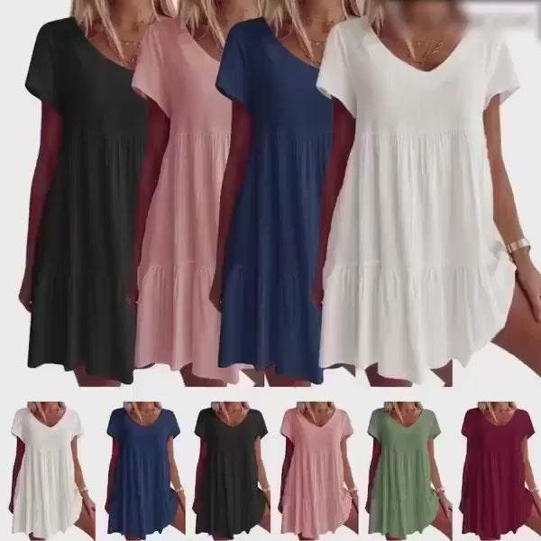 Ta tunika z miękkiego materiału jest gładka, wysokiej jakości, lekka i przewiewna. Luźny plisowany dół pasuje do każdej sylwetki, może być używana jako swobodna sukienka lub tunika, najlepszy wybór na wakacje!