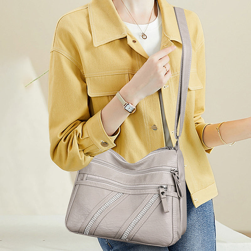 PRZESTRONNE WNĘTRZE - POMIEŚCI WSZYSTKO, CZEGO POTRZEBUJESZ: Pomimo eleganckiego wyglądu, torba oferuje dużo miejsca na codzienne niezbędne rzeczy - telefon, portfel, klucze, makijaż i nie tylko. Dzięki regulowanemu paskowi do noszenia na ramieniu lub crossbody zapewnia elastyczność i wygodę bez uszczerbku dla stylu.