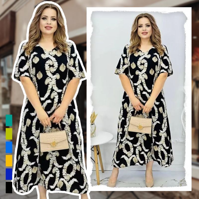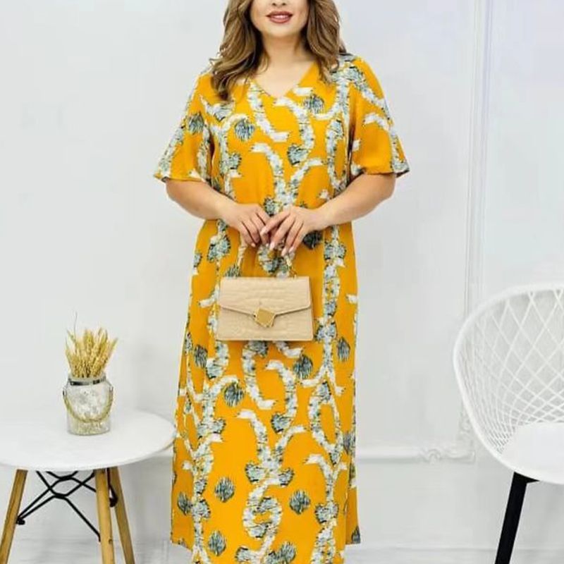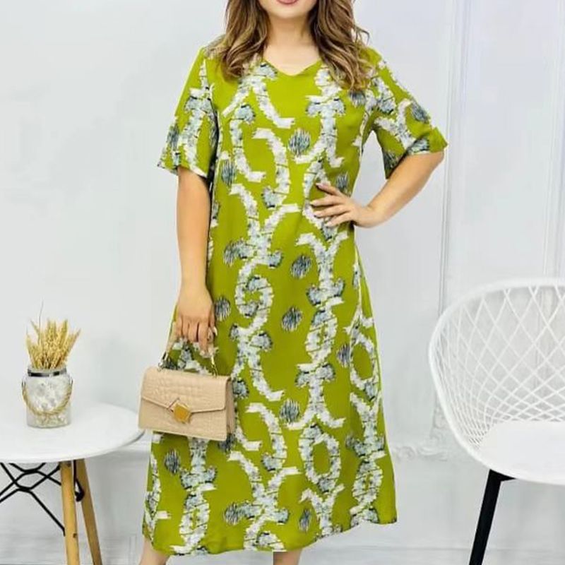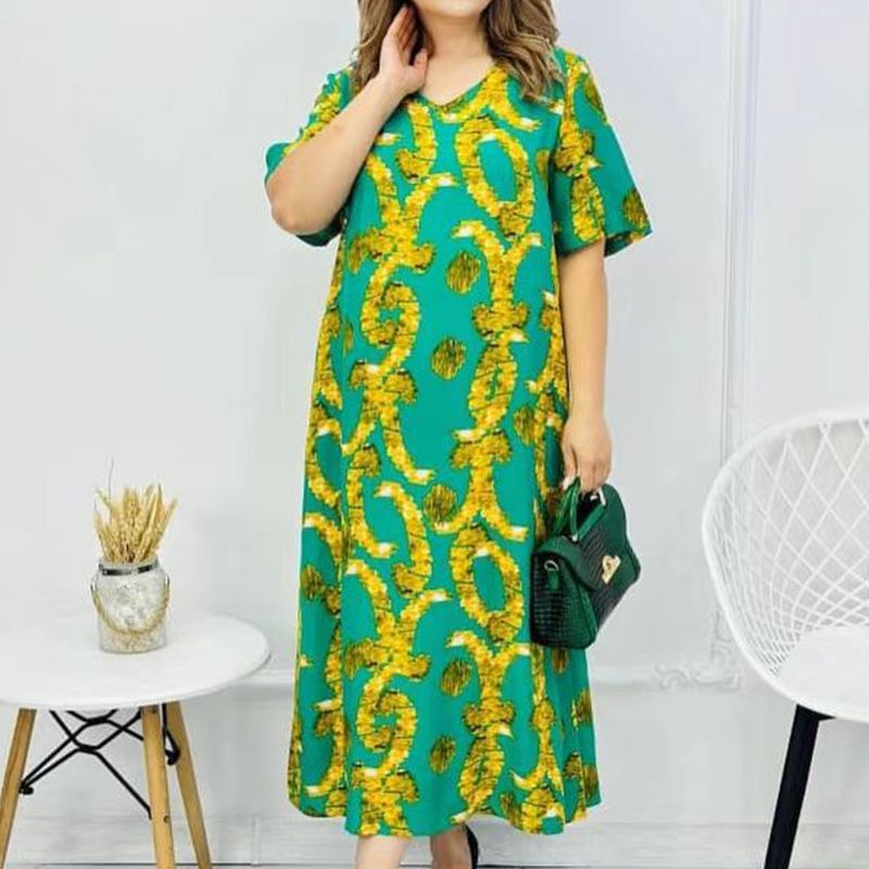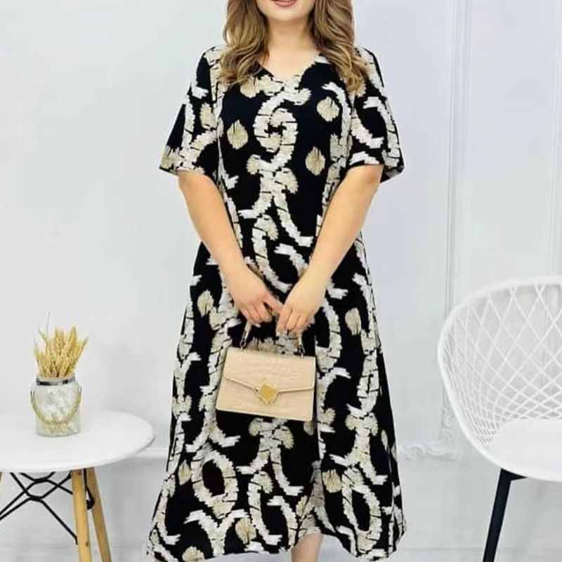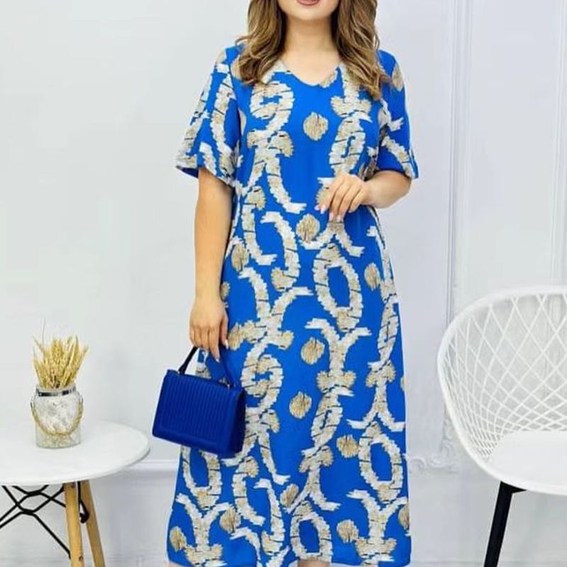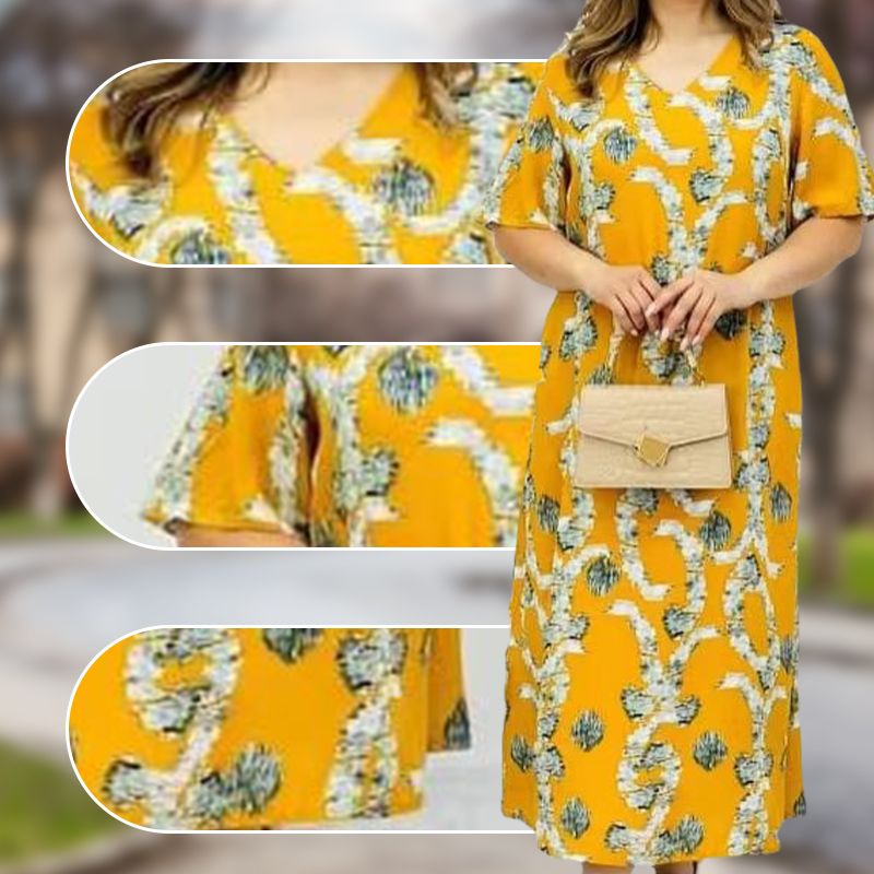 Pakiet zawiera: Damska elegancka sukienka z krótkim rękawem i dekoltem w szpic. 1 * Damska elegancka sukienka z krótkim rękawem i dekoltem w szpic