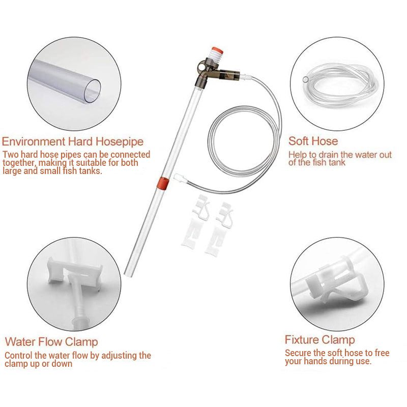 IDEALNY DO DOMOWEJ PIELĘGNACJI AKWARIUM - Zaprojektowany dla małych i średnich akwariów, ten zestaw czyszczący pomaga zmniejszyć bałagan podczas podmian wody i zapewnia zdrowsze, wolne od zanieczyszczeń środowisko wodne.