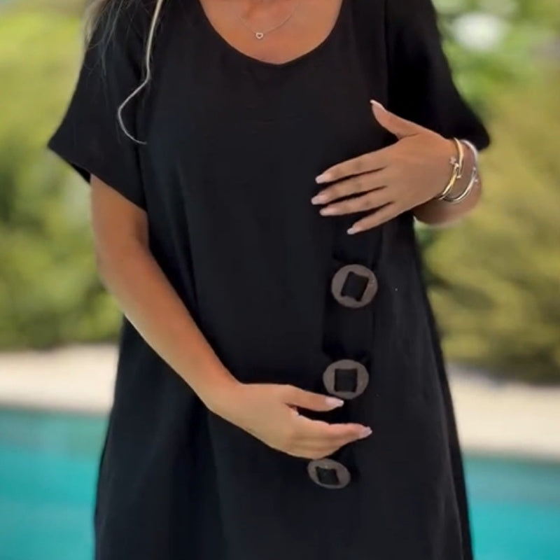 Pakiet zawiera:1*Kobieca czarna zwiewna sukienka z krótkim rękawem