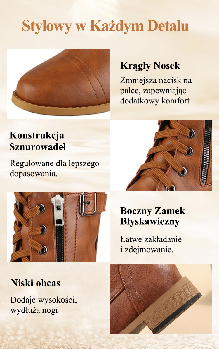 👢Damskie skórzane buty ortopedyczne z okrągłym noskiem i bocznym zamkiem błyskawicznym