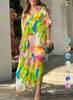 - Elegancka długa sukienka! Ta letnia sukienka maxi z kwiatowym nadrukiem w stylu boho to niezbędny element damskiej garderoby. Głęboki dekolt w kształcie litery V doskonale podkreśla seksowny dekolt i obojczyki. Odważny kwiatowy nadruk nadaje tej marszczonej sukience z krótkim rękawem żywy wygląd, który sprawi, że wyróżnisz się z tłumu.