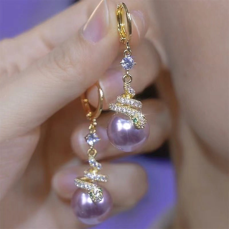 Pakiet zawiera: 1 para * pozłacane kolczyki z perłami węża