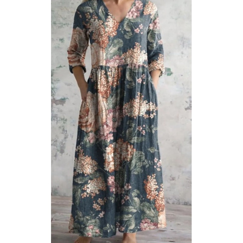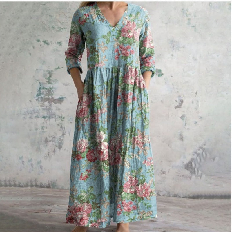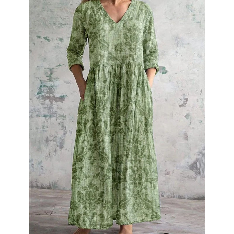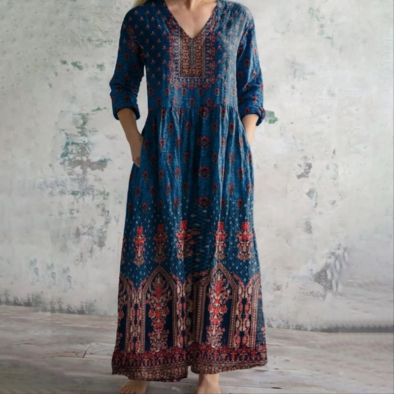 1 * Damską sukienkę z długim rękawem i dekoltem w serek w stylu retro