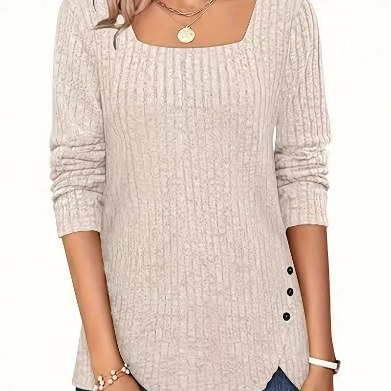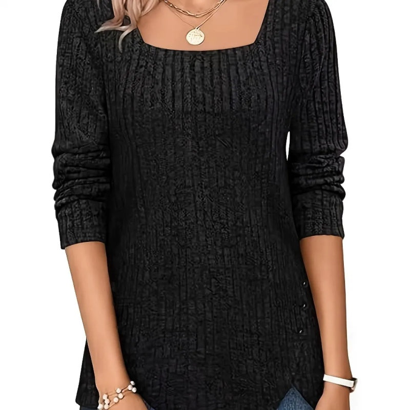 KWADRATOWY DEKOLT: Atrakcyjny kwadratowy dekolt nadaje klasycznemu swetrowi nowoczesny, stylowy wygląd. Kwadratowy krój podkreśla dekolt i z łatwością pasuje do każdego stroju.