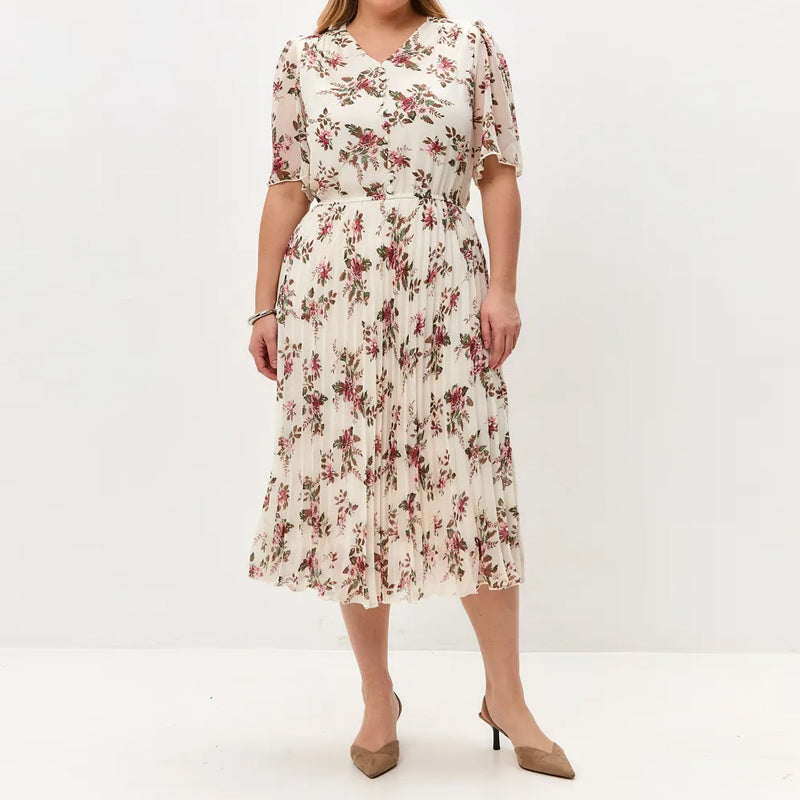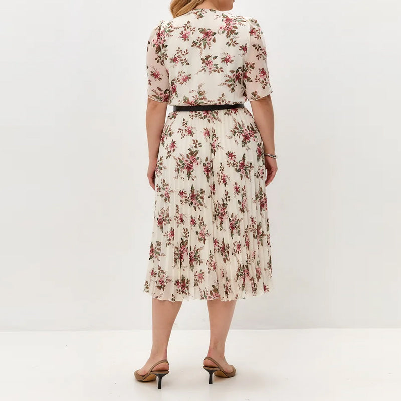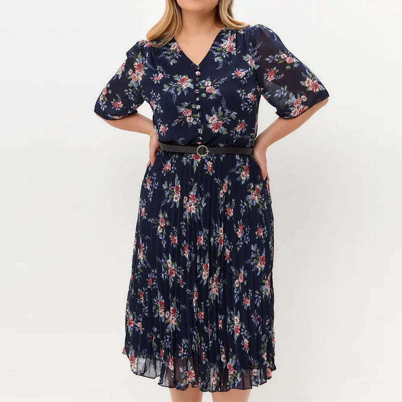 Opakowanie zawiera 1 x Elegancka szyfonowa plisowana sukienka w kwiaty
